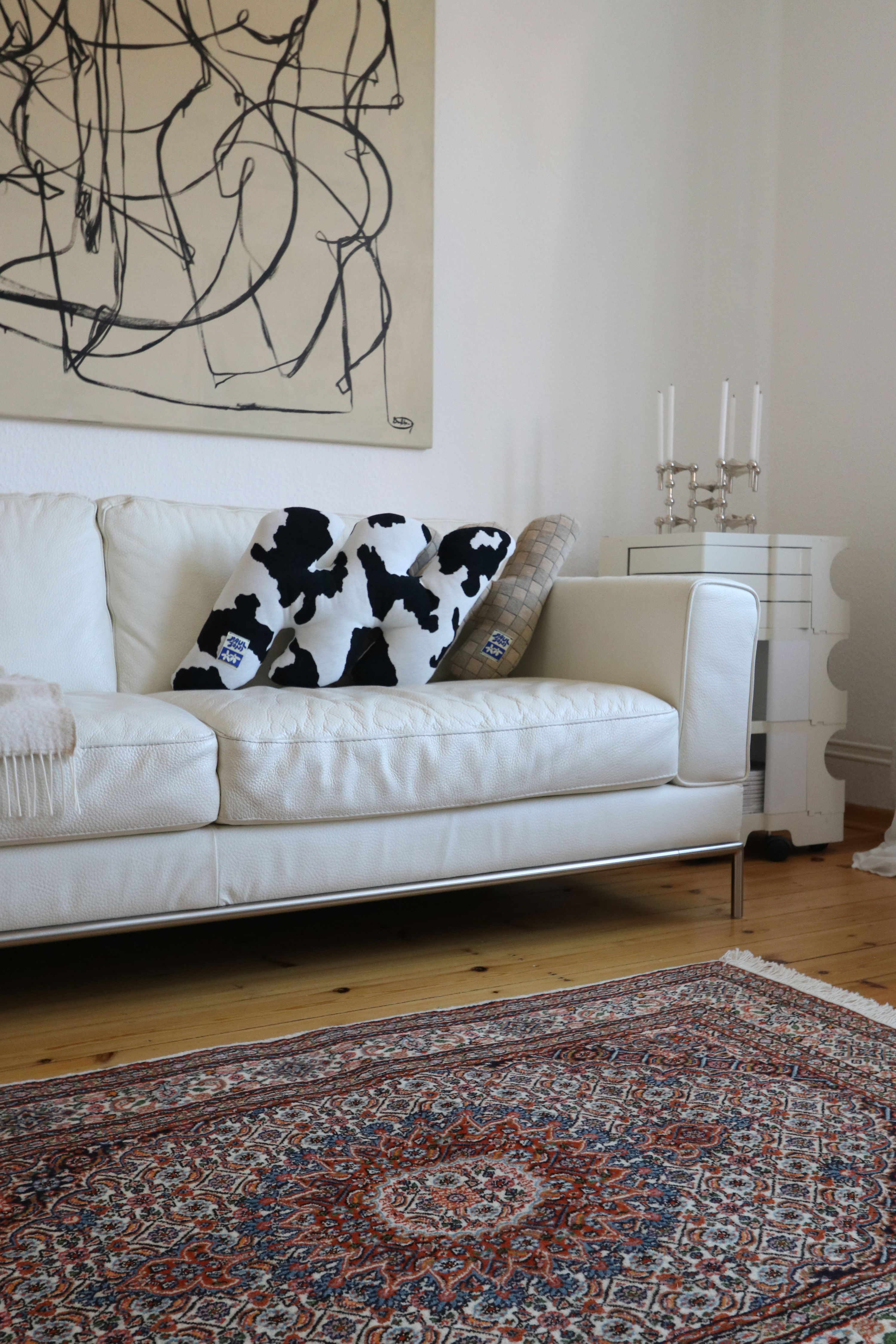 Mit neutralen Möbeln balancieren: Wenn der Teppich auffällig ist, sollten Sofa & Co. ruhiger sein.